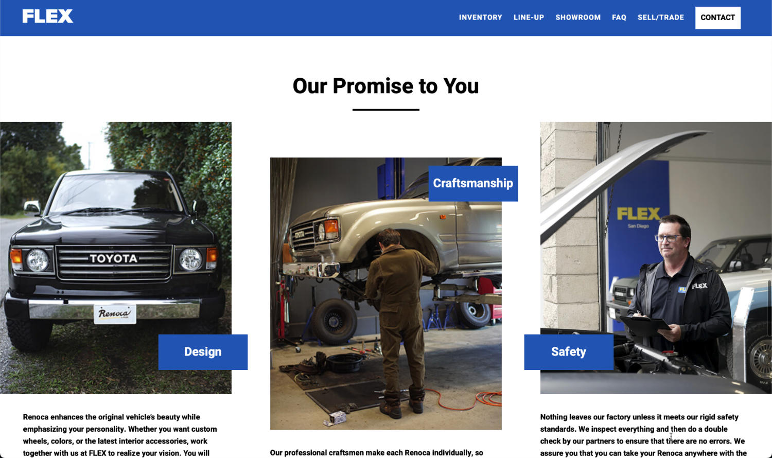 Flex Corporation operates over 50 dealerships primarily focusing on customizing Land Cruiser and Hi-ace models. With the aim of entering the North American market, I designed a website specifically for the U.S.